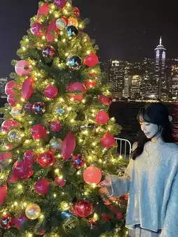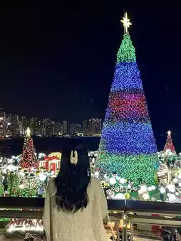 ❣️ Hidden camera position: Small Christmas tree by the sea! You can take pictures of the night view of Victoria Harbour in the background, it’s so beautiful! 😍