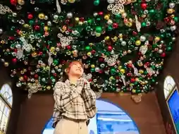 As soon as you step into the atrium on the second floor, you will see the 2.75-meter-tall Mickey in the "Mickey Christmas House" welcoming everyone to embark on a planting journey together. Before the journey begins, everyone can't help but take photos and check in! You can also sit down next to the cabin, take a break, watch the Christmas cabin, and enjoy the Christmas atmosphere! Entering the 9.5-meter-high winter cabin, you will see glittering Christmas ornaments hanging inside, creating a festive atmosphere. The Mickey-shaped ornament is 3D-printed with environmentally friendly materials. Walk through the hut into the garden to plant, and Mickey and Minnie will surprisingly appear in the window as you walk. Remember to seize the opportunity to take a photo with Mickey!