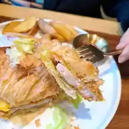 The pork chop is crispy and tender, the cheese is savory and smooth, the texture is soft and delicate, the croissant is crispy on the outside, full of butter aroma, and served with crispy potato chips.