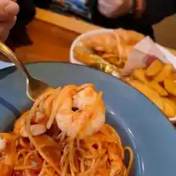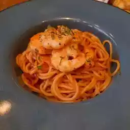 The shrimp meat is crispy, the pasta is covered with fresh and sweet tomato sauce, fresh and layered.