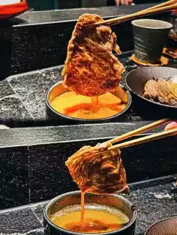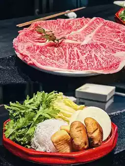 Selected one of Japan's three major wagyu beef "Omi beef" and Kyoto Hime beef, respectively, there are 4 different parts, selling red color, fat ratio fat and lean evenly, Wagyu beef are cooked with sukiyaki sauce, during which vegetables are separated;