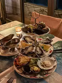 The seafood bowl has 3 layers, the bottom layer has sashimi, cheese baked crab lid, vanilla and cheese baked bacon; the middle layer has New Zealand oysters; the bottom layer has mussels and emerald snails seafood overall good, with the restaurant's homemade Thai herb sauce and eat more delicious, recommended 👍🏻