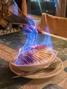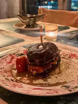 The staff poured wine and ignited the dessert at the dessert. The blue fire was very IGable. The chocolate ice cream in the middle was not too sweet and tasted like wine. Recommended 👍🏻