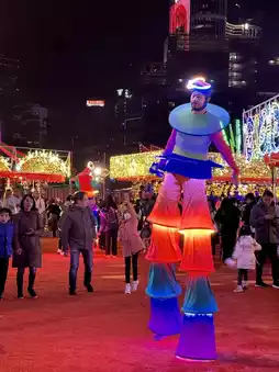 There are several cooked food stalls, and many photo spots📸️ circus performers perform, the atmosphere is great! ️🎄