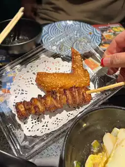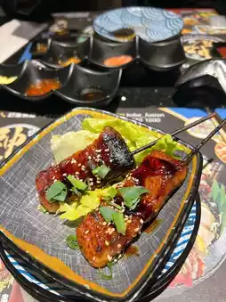 I quite like the grilled chicken skin and grilled pineapple here. The grilled chicken skin is crispy on the outside, but still retains its smoothness; the grilled pineapple is sweet and juicy. The sushi is almost the same as a regular all-you-can-eat restaurant, but here there is cheese crab seed sushi🤩 I like it the most~