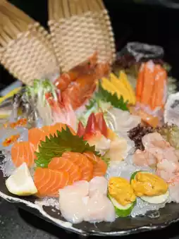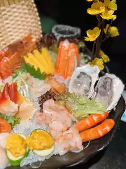 After seating, the shopkeeper is keen to teach customers how to order by phone by themselves. The restaurant will arrange to serve an iced sashimi platter first, the portion is plentiful🤩 There are a variety of sashimi salmon, scallops, red shrimp, sweet shrimp, Thai raw shrimp, and oysters and seaweed😋 The red shrimp are large and tender, the oysters are very fresh and plump👍🏻