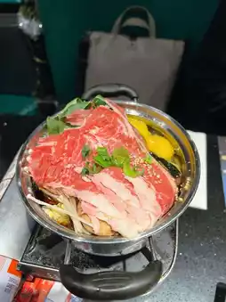 Limited time choice 🐮Japanese Wagyu sukiyaki, cold weather hot pot warm the stomach is best However, the appearance is quite beautiful 🤩 After eating the clerk also asked us if we can add beef and vegetables hot pot ingredients for free, very attentive ❤️