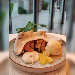 Finally, here is the must-try marshmallow waffle, not served is already very exciting, different from the usual marshmallow waffle, his marshmallow is not in the waffle, but in the waffle surface spread a large pat ~ very soft and glutinous 😋 waffle is made to order, fragrant on the table, crispy outside and soft inside 😍