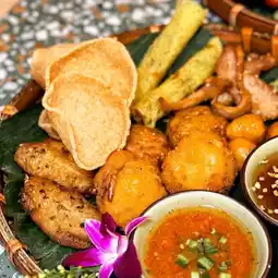 The platter is large enough for two to three people. There are whole shrimp crackers๐ฆ, chicken wings, fish cakes, spring rolls and shrimp crackers๐คญ, which are crispy and delicious, very satisfying.