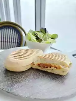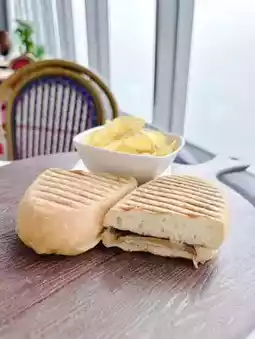 This is a roast chicken Italian sandwich with roasted butternut squash and artichoke aioli. The outer layer of the sandwich is baked until crispy, served hot and fragrant. The chicken has a little roasted flavor, plus the natural sweetness of pumpkin, a very fresh and delicious combination😋