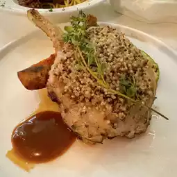 The smoked pork saddle steak is served to the table in front of you and slowly opens the suction cup, so you are fully feeling the applewood smoke! The pork saddle meat is tender and juicy, and because of enough thickness, the taste is also very good! Its side dish vegetables, also handled very well. I really appreciate his pumpkin, it has a pan-fried taste, but also has a sweet pumpkin flavor😋