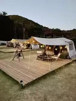 It is fully equipped with camping lights, mattresses, duvets, camping tables and chairs, cooking stoves, cooking utensils, condiments, cutlery, water glasses, kettles, refrigerators, garbage bags, power and lighters. There is no need to bring any camping gear except for your own food and personal hygiene items. The campsite has bathroom facilities, hot and cold water supply💧, the facilities are quite clean. Very convenient and relaxing camping option⛺️. Those who want to BBQ at the camp can also book a barbecue package in advance.