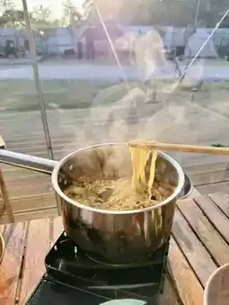 First time camping, I really like the sense of leisure, from the sun shining to watching the sun slowly setting 🌅, to the night camp lights on 🌌, every time there is a different atmosphere. I don't know why I think I have to cook noodles to have the atmosphere when camping 🤣, blowing the breeze of nature, eating hot noodles 🍜, it's really good 😆! Because it is near the suburbs, the temperature difference between day and night is a bit large, and the temperature drops even more after sunset, so you really need to bring enough clothes.