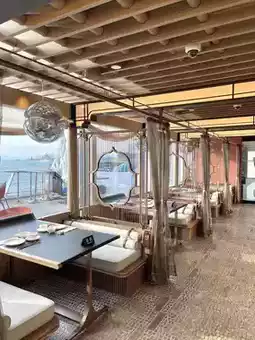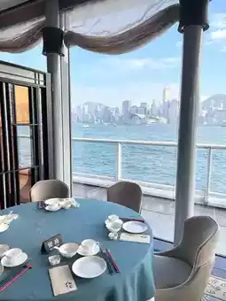 The restaurant's decoration is gorgeous and stylish. The floor-to-ceiling glass windows offer a panoramic view of the entire Victoria Harbour, which is so beautiful.