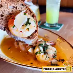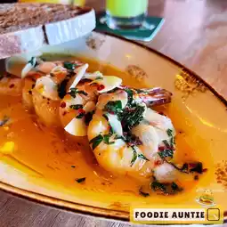 🦐 Appetizer chose "prawn", which is fried tiger prawns, served with garlic white wine sauce and a little chili powder.
