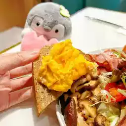 🐧 My favorite is the fried scrambled eggs, which are super tender, juicy, and full of egg flavor. They are very delicious without the need for additional seasoning. Eat it with the sweet and chewy sourdough toast, it is healthy and delicious👍