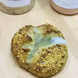 Made with 100% Italian pistachio jam, the filling is a Q-bomby and pistachio cream cheese filling, and the outer layer is the rich nutty and crunchy texture of crushed pistachios