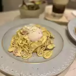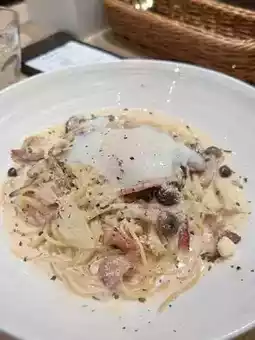 Slow-cooked 64-degree poached eggs and carbonara pasta $88