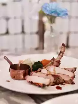 The black-haired pork saddle rack is grilled very crispy, rich in meat flavor, also cooked in slow cooking, soft and juicy, and full of grease fragrance👅 Served with sweet pumpkin puree and barbecue sauce to eat more delicious