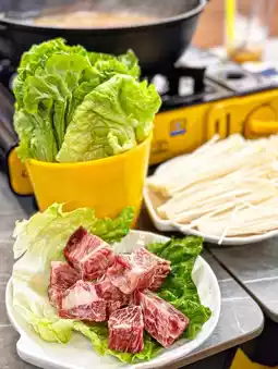 The beef is plump, the chicken pot sauce beef cubes are more chewy, the soup is enough flavor basically hot pot do not need to order soy sauce spicy and with a cup of iced soda just right!