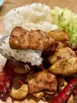 The appearance and taste are very good, the chicken is tender and fragrant, seemingly juiceless served with rice? No, the fried and delicious chicken and cashews, and the distinct yet soft white rice actually go well together, my partner ate a grain of it left.