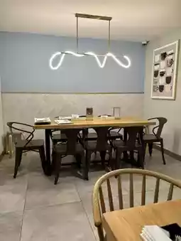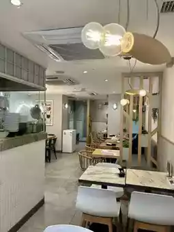 I took him on the footbridge back to Rainbow Road and into a small cafe with elegant decoration for lunch.