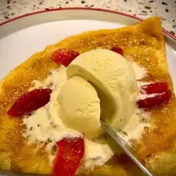 📌Flaming Orange Wine Crepe $88 ~ The crepe is topped with red orange flesh and vanilla ice cream, with just the right amount of sweetness, a perfect conclusion to a satisfying lunch. . 🤩