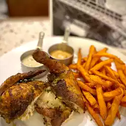 📌Half a roast chicken $135 ~ The roast chicken has a crispy skin and is full of herb flavor. It is delicious without any sauce, but the smoked chili salad dressing adds a special flavor. My favorite side dish is sweet potato fries, so sweet... I can’t stop eating them‼ ️😁