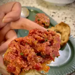 📌French Charolais raw beef tartar $95 ~ hand cut