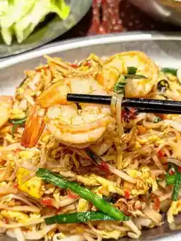 Thai style prawns stir-fried with Phnom Penh noodles