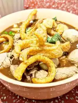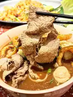 The soup is very fresh and rich, with crispy fried pork skin on top, the beef portion is plentiful and large, plus the bouncy beef balls, and the golden fragrance, which makes people can't stop eating.