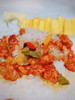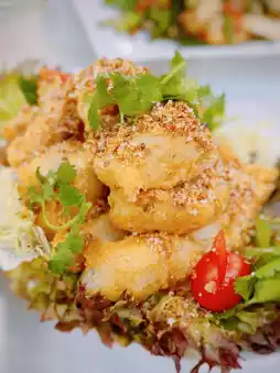 There is a lot of portion on a plate, the big crispy fried is very crispy,, it tastes completely tasteless, with the pineapple underneath to eat together can reduce the greasiness.