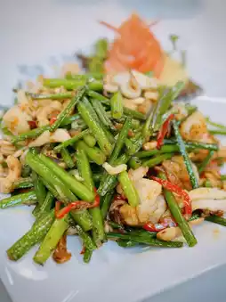 The dish is served hot and spicy, and the ingredients are rich. There are squid, shrimp, shrimp, cashew nuts, and of course the main character, the leek. The taste and texture of all the ingredients are very good, the saltiness is just right, and the taste is rich enough.