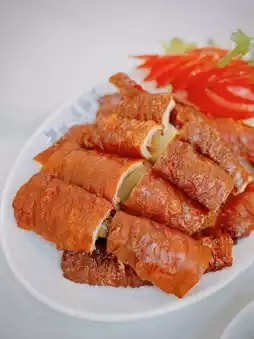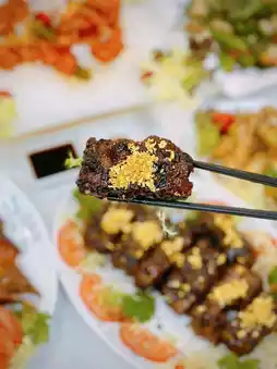 There are eight pieces of olive bone in a plate, each piece is sprinkled with gold foil. It is very magnificent and full of style. This dish is full of good luck in the New Year. The olive bone is soft and soft, not tough at all, and the olive flavor is fragrant enough.