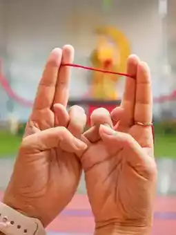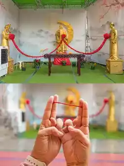 the red strings with your hands as shown in the picture (do not make red strings while praying.