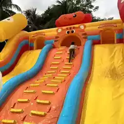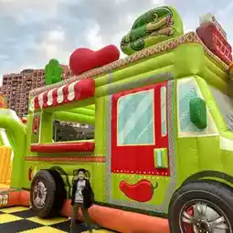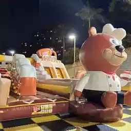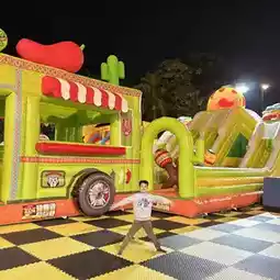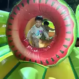 🍎There are also spicy fast food trucks and tropical fruit boats, a variety of food photo spots, and a slide. A must-play for bold kids inflatable pirate ships that can be rocked mighty high.
