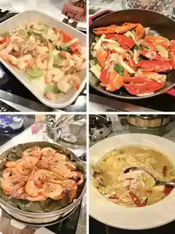 🥣 Soups include creamy corn pastry soup and tea tree mushroom snail soup are very popular. 🥘🍲 There are many choices of cooked food, such as Peking duck, tempura, steamed scallops, onion fried crab tongs, pickled fish, red oil hand, steamed fish steamed shrimp, curry chicken, carbonara pasta, mushroom stewed bean sprouts and so on.