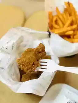 The golden, crispy fried chicken nuggets are slightly spicy and incredibly flavorful.