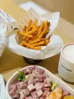 The hand-cut fries are infused with tomato sour cream powder, adding a slightly sour flavor that's appetizing and delicious.