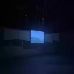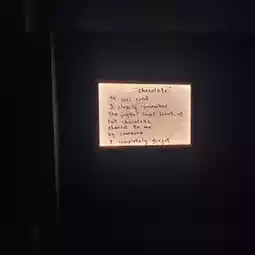 Entering the dark corridor, you will see some words written on the wall, and next to the words there is a white canvas, and you will also hear some sounds.