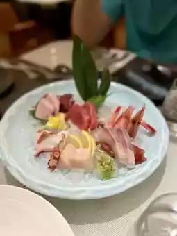 One serving includes a variety of sashimi: scallops, octopus, red snapper, prawns, pond fish, and hamachi. All are fresh and shiny. The scallop sashimi is my favorite!