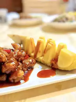 I like the sweet and sour pork not very fatty, bite-sized meat, but also fried crispy and crispy, and not too sweet. Served with fresh pineapple🍍, sweet and refreshing, an excellent dish.