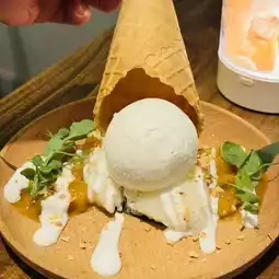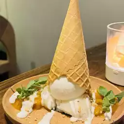 The presentation is excellent, coconut ice cream, glutinous rice, fresh mango, mango jam, coconut milk, crispy rice with crispy donuts, the whole dessert is rich and not too sweet, full of Thai fusion flavor