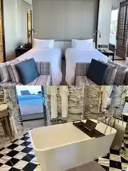 The room is gorgeously decorated and elegant, the space is spacious, and the room has a beautiful sea view! 😍