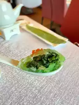 ▫️ The appearance is quite attractive 🤣 Bite open it turned out to be spinach filling, and large shrimp, feel quite healthy 😆