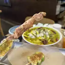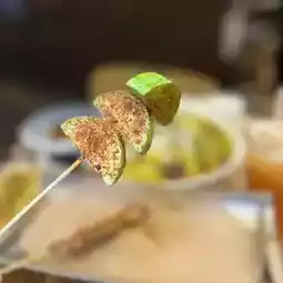 The restaurant warms the skewers with candlewood stands, candles toasted underneath, warming the skewers all the way to keep the temperature!