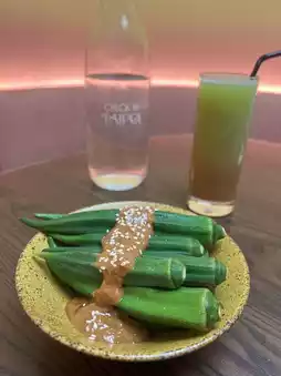 Additionally, I had the sesame sauce cold mixed okra for $48. The okra is crunchy, and with the sesame sauce, the taste is rich and refreshing.