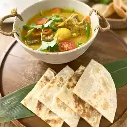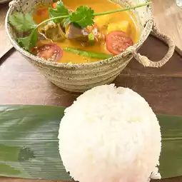 Yellow curry has a lighter taste and is suitable for people who don't like it too strong. It is better to use it with chicken, but my wife chose beef. It also has side dishes such as potatoes, tomatoes, eggplants, green beans, etc. We added $18 to turn the rice into a pancake, the texture was a bit chewy, and the taste was good😆