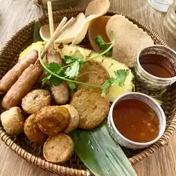 There are 3 pieces of sugarcane shrimp, chicken dates, fish cakes and pork sausage diced, as well as 4 pieces of pepper shrimp slices, with two special sauces. The four snacks are fragrant and have good taste. The chicken dates are more prominent; the shrimp crackers are peppery and crispy😊