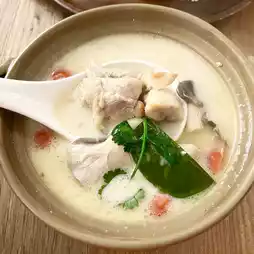 Put in chicken, coconut milk, galanthus, enoki mushrooms, tomatoes, bay leaves and coriander to cook. The overall taste is strong in coconut flavor, the chicken is smooth and fragrant, and it has the taste of mushrooms and tomatoes. It tastes especially good when it's cold🥰